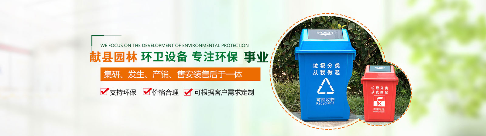 產(chǎn)品有:果皮箱、垃圾箱、花盆、護(hù)花欄、路椅、大型袋裝垃圾箱、保潔專用三輪車及環(huán)藝雕塑、健身器材及物業(yè)小區(qū)配套設(shè)施等。